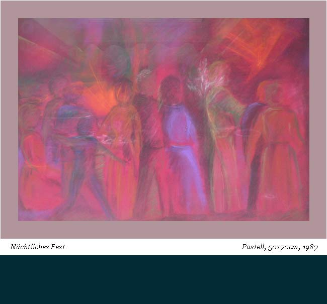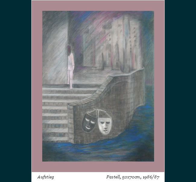 Durch die Anregung intensiver Träume entstand die Werkgruppe der Pastell-Bilder. Dieses Malmaterial mit den reinen Pigmenten eignet sich besonders dazu, die oft farbintensiven Träume in Bilder umzusetzen